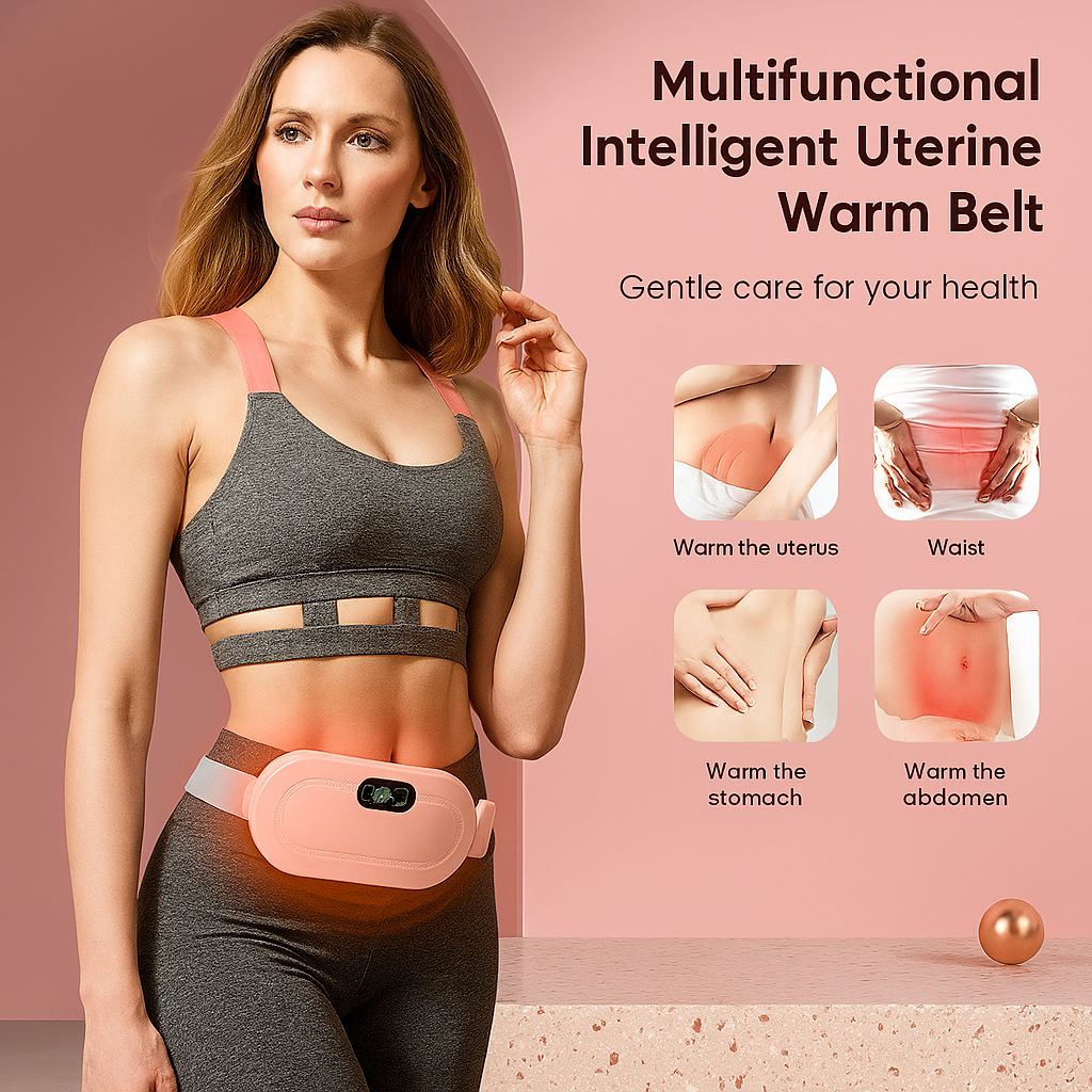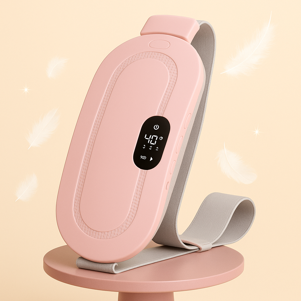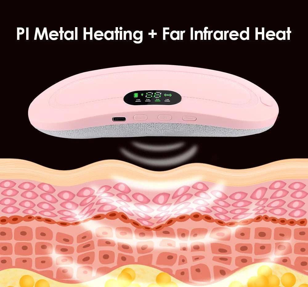 No more curling up in pain. This sleek heating pad is designed to wrap around your waist and ease discomfort with warmth and massage. Whether you're working, relaxing, or on the go, this device is your best companion during your period.